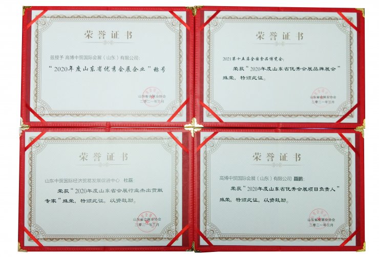 近日,中貿(mào)集團(tuán)旗下品牌展會(huì)CNFE2021第十五屆全國(guó)食品博覽會(huì),榮獲山東省會(huì)展業(yè)協(xié)會(huì)2020年度山東省優(yōu)秀會(huì)展品牌展會(huì)殊榮,其承辦單位高博中貿(mào)國(guó)際會(huì)展(山東)···